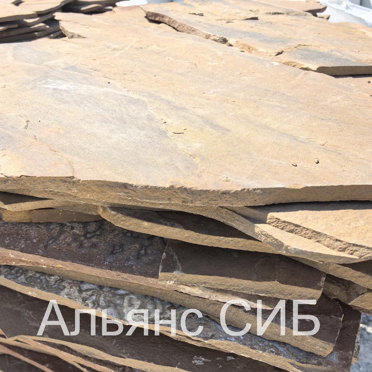 #песчаник желтый, коричневый колотый для облицовки 1-2 см Хакасия, дикий камень для стен, колотый плитняк.