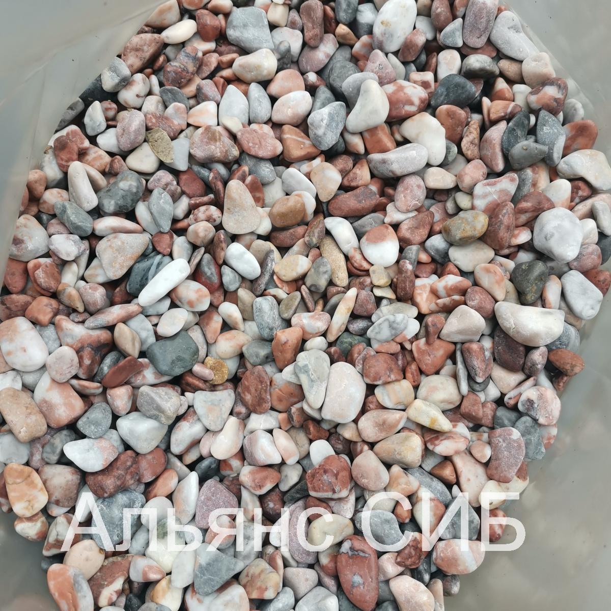 Крошка Мрамор серо-розовый галтованный, наполнитель для каменного ковра, галька микс фр. 5-8 мм.