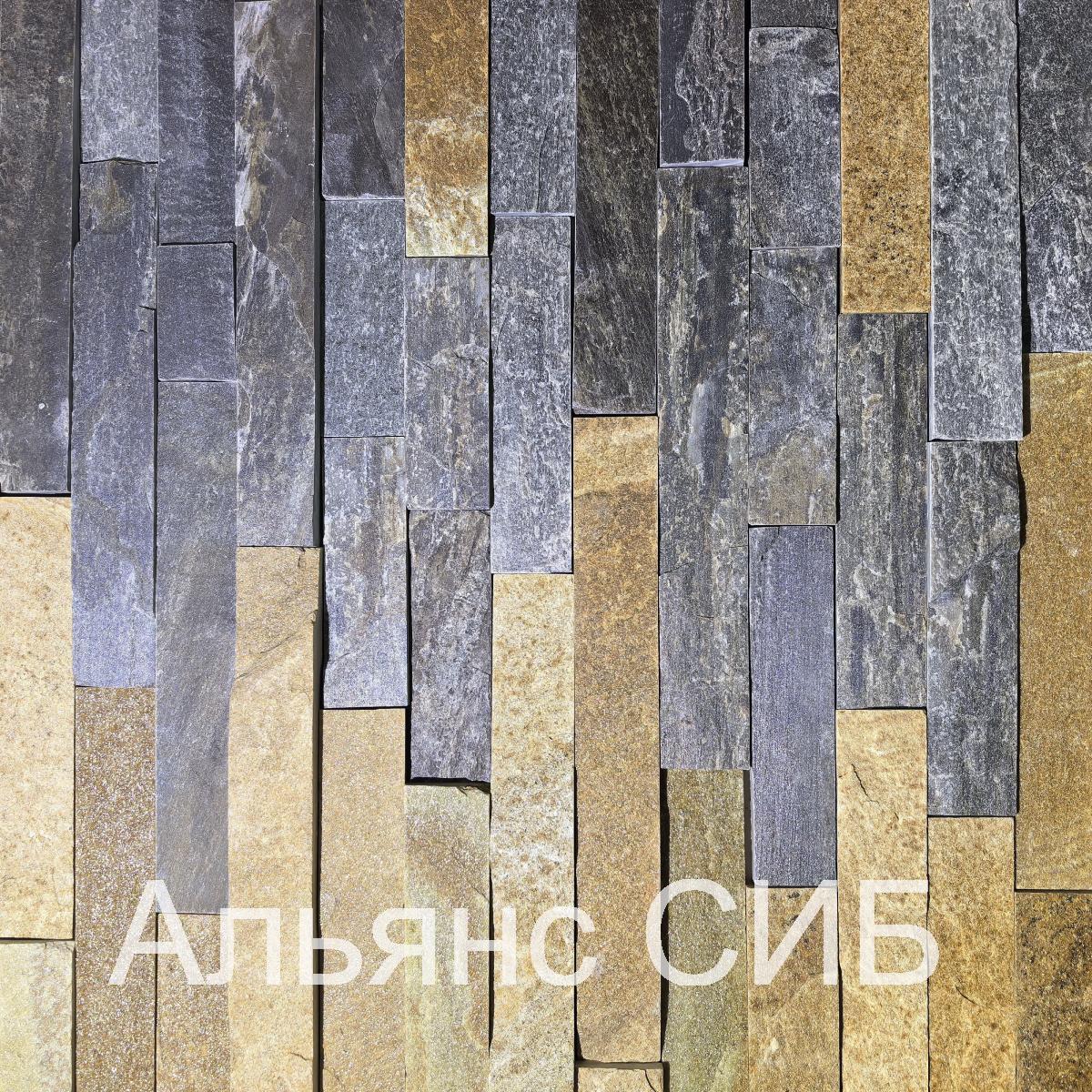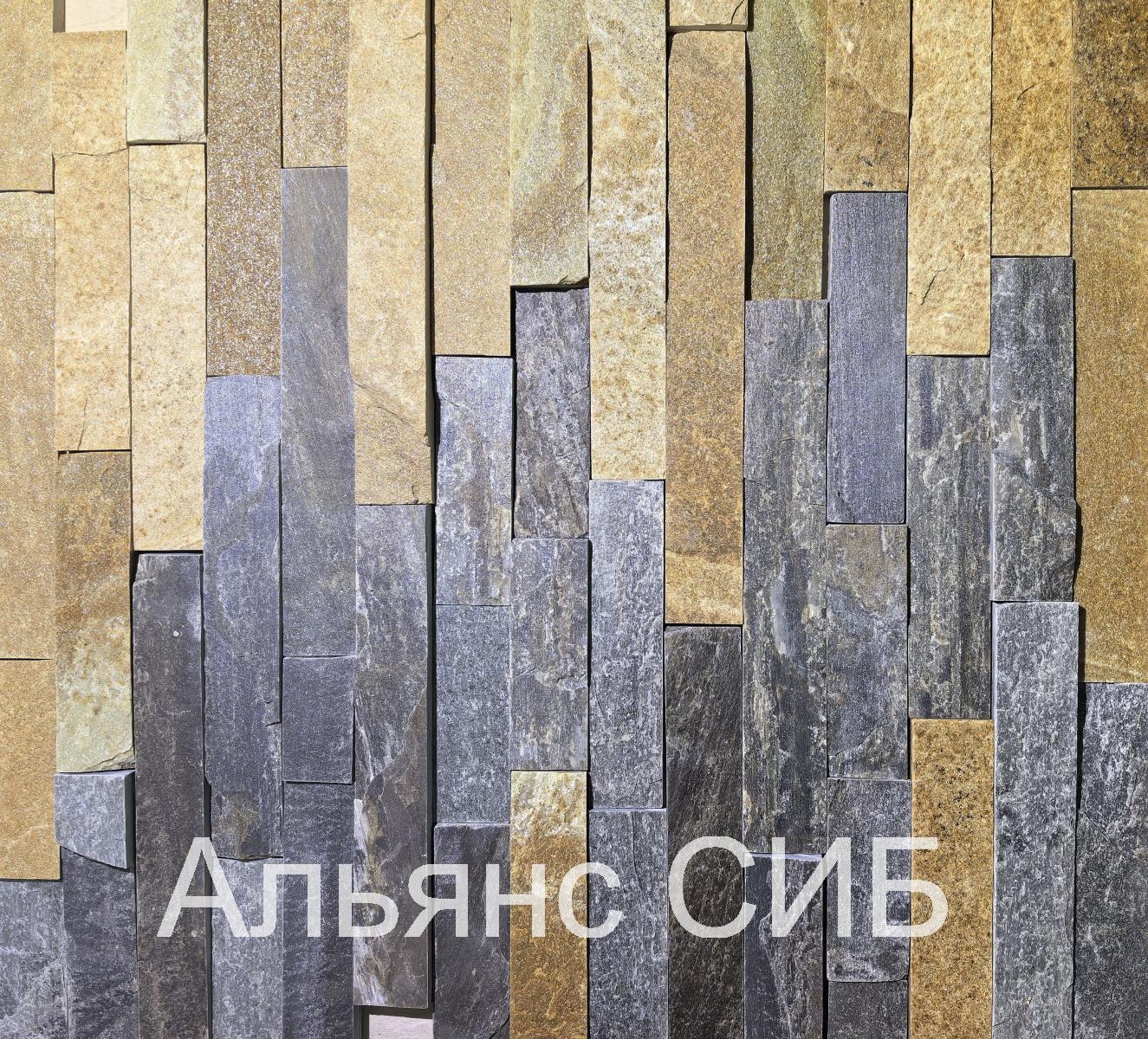 Плитка из серого златолита, ламель, ширина ламели 40 мм.